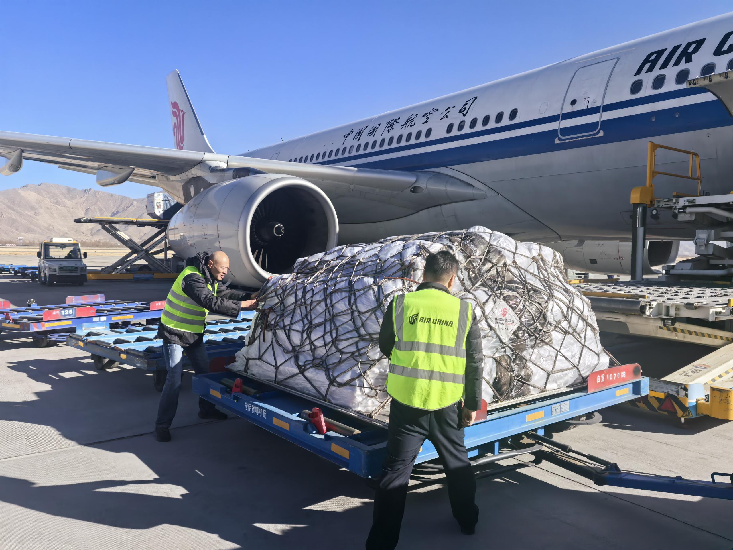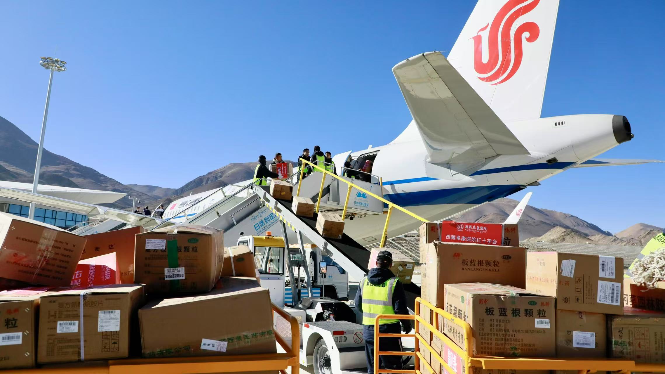 西藏日喀則地震發(fā)生后,中航集團第一時間啟動應(yīng)急機制,調(diào)整航班計劃,全力保障抗震救災(zāi)運輸。圖為2025年1月9日,中航集團飛機載著救援人員和物資奔赴災(zāi)區(qū)。