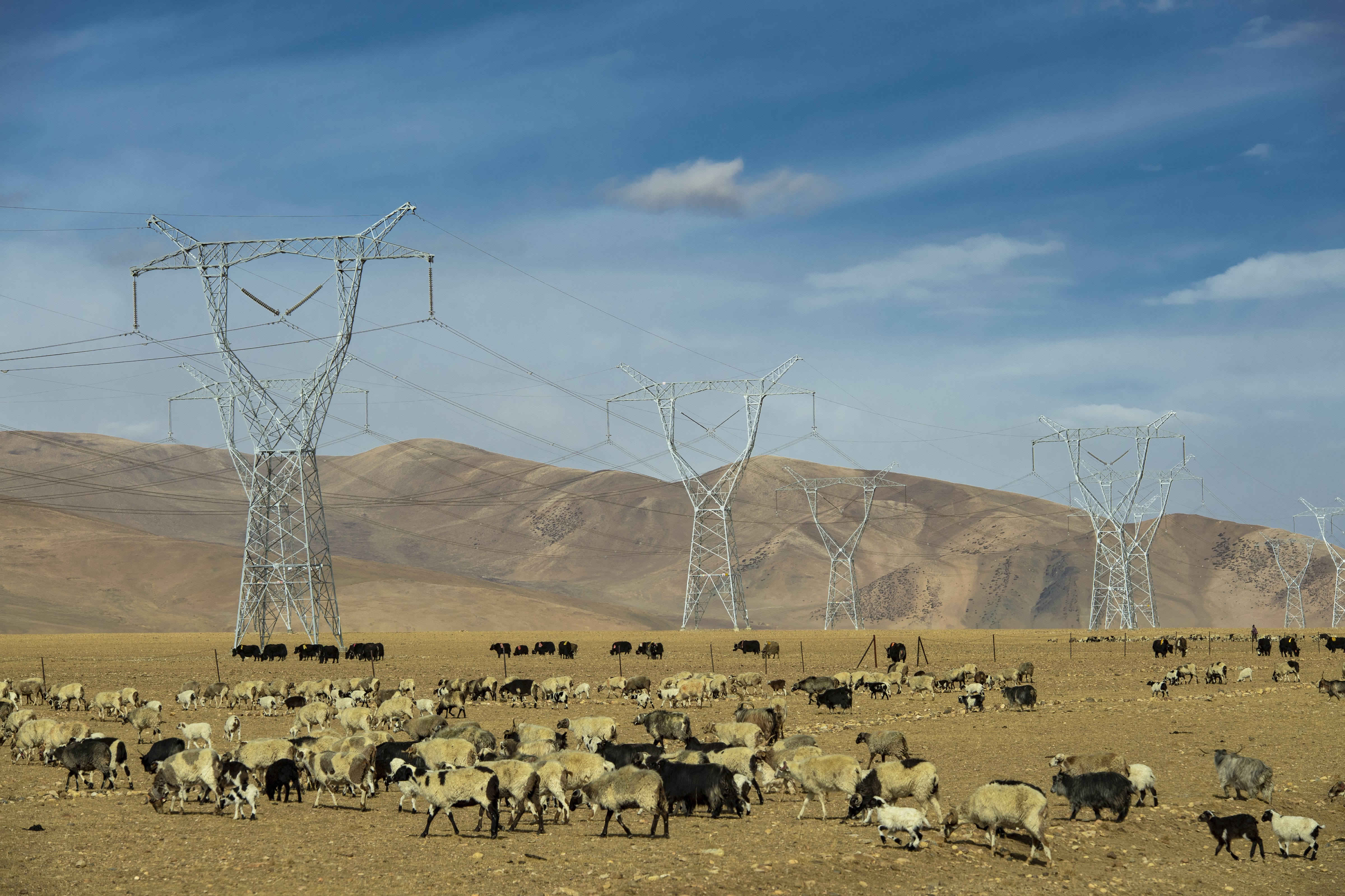 2023年5月,在薩嘎縣公珠措景區(qū)旁,110千伏隆門(mén)線佇立在高原之上,電力鐵塔下是一群覓食的牛羊,構(gòu)成了一幅電力與大自然和諧共處的畫(huà)面。