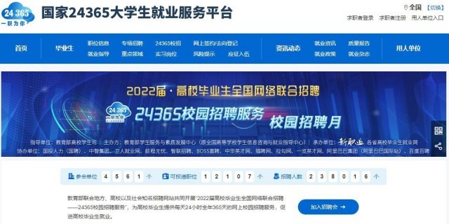 近日,教育部聯(lián)合地方、高校以及社會知名招聘網站共同開展“2022屆高校畢業(yè)生全國網絡聯(lián)合招聘——24365校園招聘服務”,為高校畢業(yè)生提供每天24小時全年365天的網上校園招聘服務,促進高校畢業(yè)生就業(yè)。高校畢業(yè)生和用人單位可通過國家24365大學生就業(yè)服務平臺查詢相關信息。