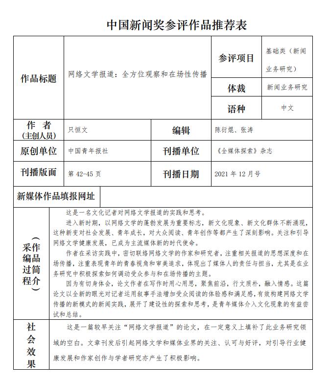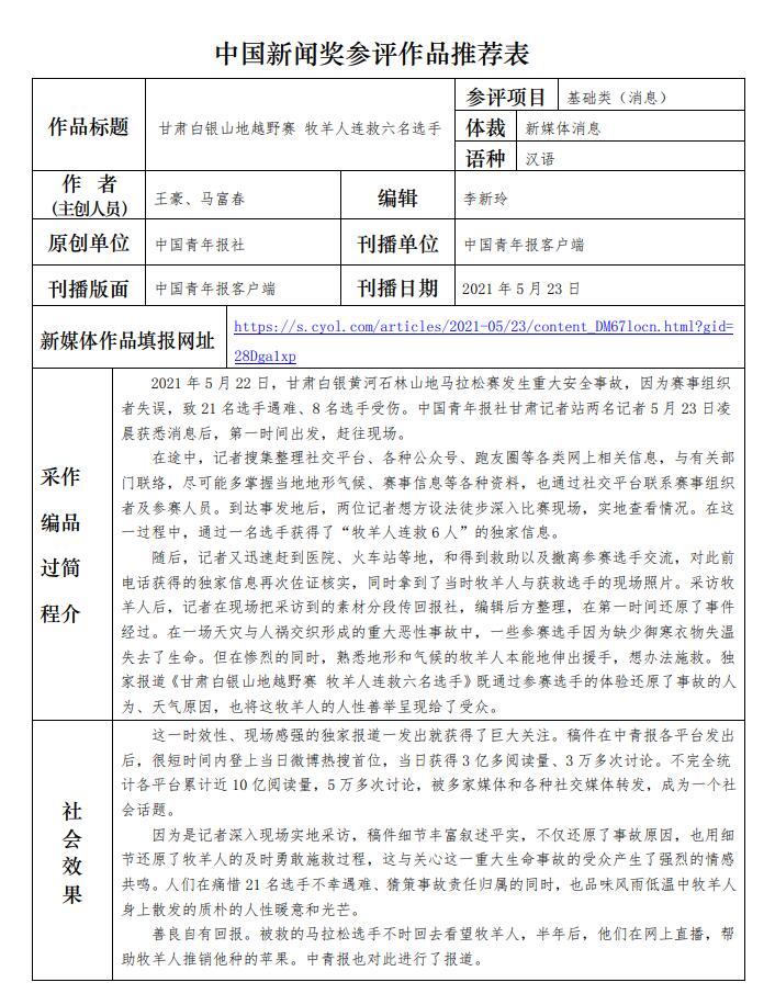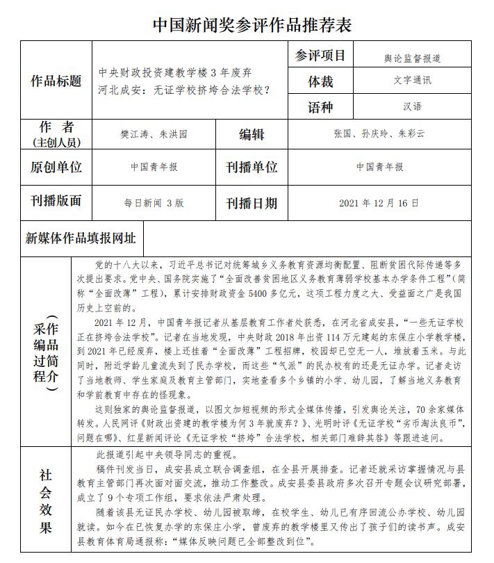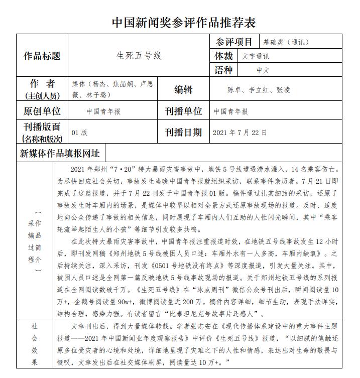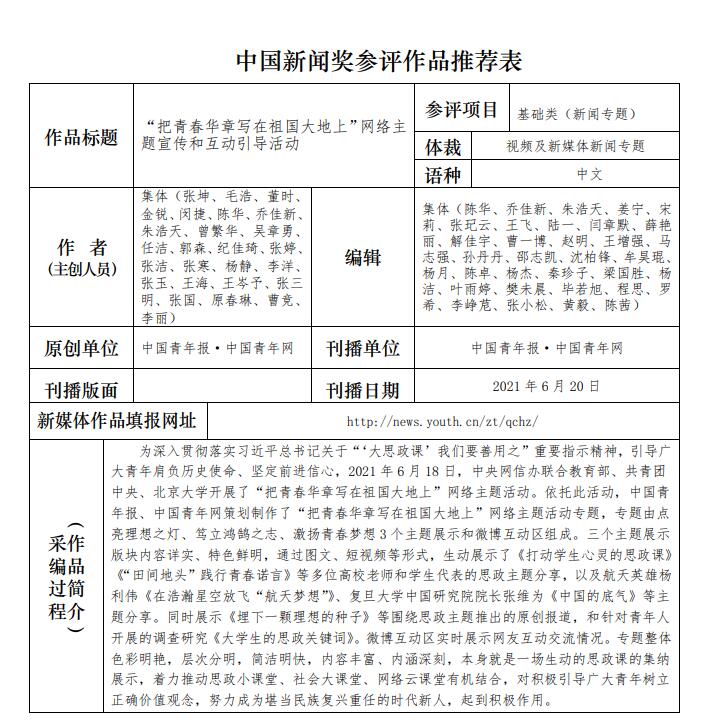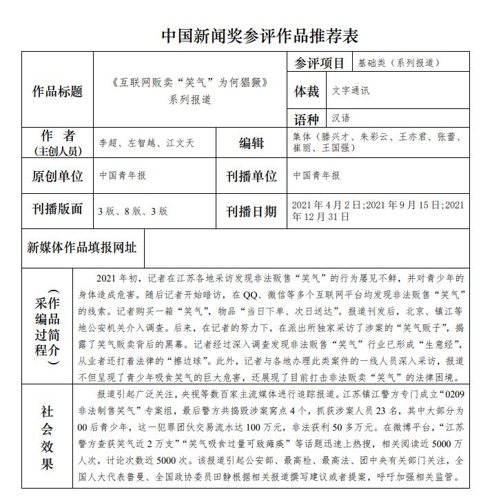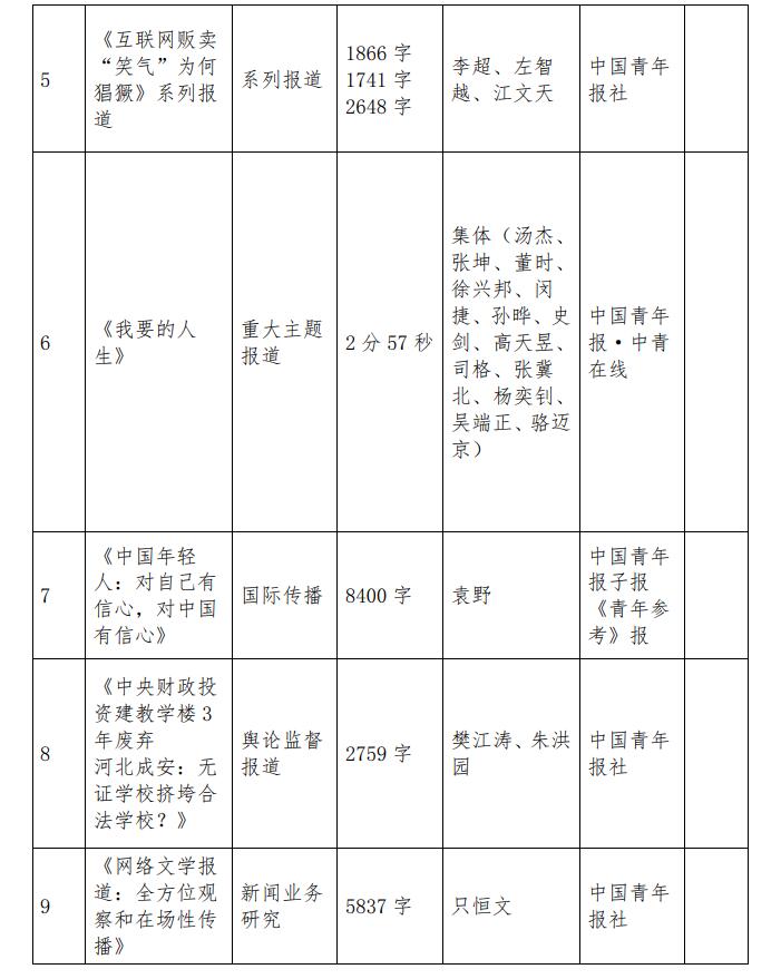 中國(guó)青年報(bào)社推薦參評(píng)第三十二屆中國(guó)新聞獎(jiǎng)報(bào)送作品公示