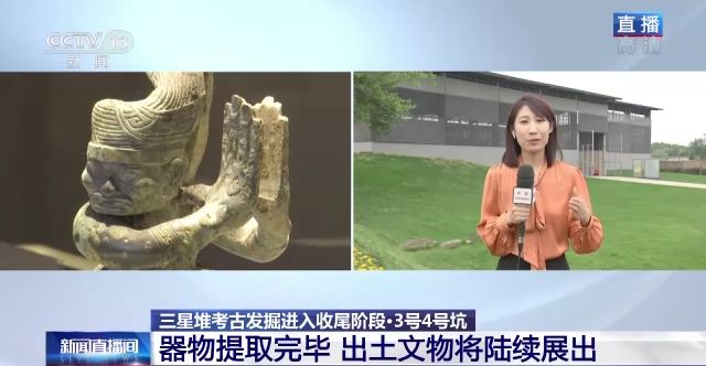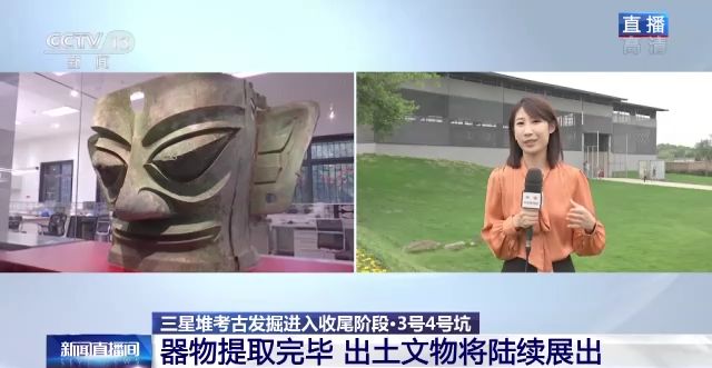 總臺(tái)央視記者 任梅梅:我身后就是三星堆遺址考古發(fā)掘大棚,目前6個(gè)新發(fā)現(xiàn)的祭祀坑考古發(fā)掘工作總體已經(jīng)開始進(jìn)入收尾階段,其中3號(hào)坑和4號(hào)坑已經(jīng)完成現(xiàn)場的發(fā)掘工作,5號(hào)坑和6號(hào)坑整體提取進(jìn)入實(shí)驗(yàn)室發(fā)掘階段。