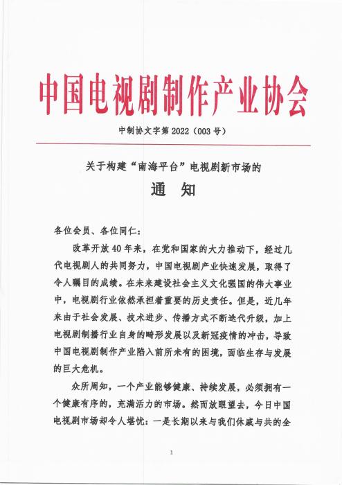 中新網(wǎng)北京6月23日電 記者從中國(guó)電視劇制作產(chǎn)業(yè)協(xié)會(huì)了解到,中制協(xié)于6月22日發(fā)布《關(guān)于構(gòu)建“南海平臺(tái)”電視劇新市場(chǎng)的通知》。通知顯示,“南海平臺(tái)”計(jì)劃將于今年四季度以經(jīng)典老劇免費(fèi)試鏈運(yùn)行,年底擬首輪劇獨(dú)家上鏈運(yùn)營(yíng),正式推出。
