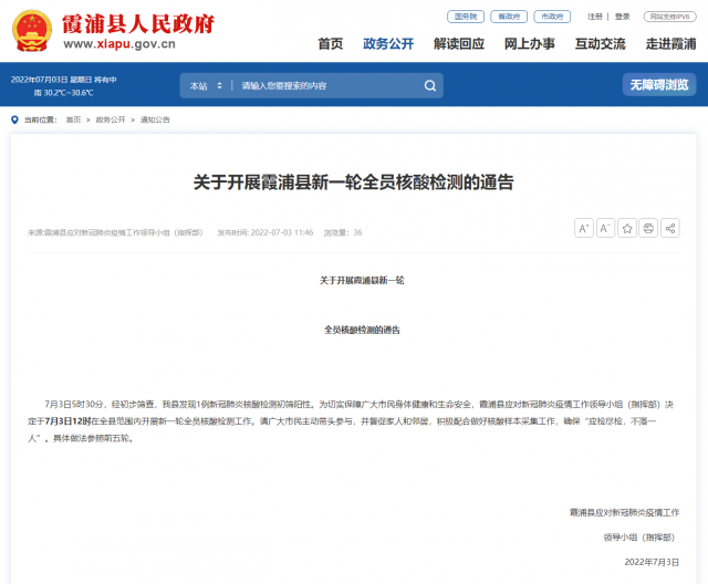 央視網(wǎng)消息:據(jù)霞浦縣人民政府網(wǎng)站消息,福建省寧德市霞浦縣應(yīng)對新冠肺炎疫情工作領(lǐng)導(dǎo)小組(指揮部)7月3日發(fā)布通報(bào), 7月3日5時(shí)30分,經(jīng)初步篩查,霞浦縣發(fā)現(xiàn)1例新冠肺炎核酸檢測初篩陽性。為切實(shí)保障廣大市民身體健康和生命安全,霞浦縣應(yīng)對新冠肺炎疫情工作領(lǐng)導(dǎo)小組(指揮部)決定于7月3日12時(shí)在全縣范圍內(nèi)開展新一輪全員核酸檢測工作。