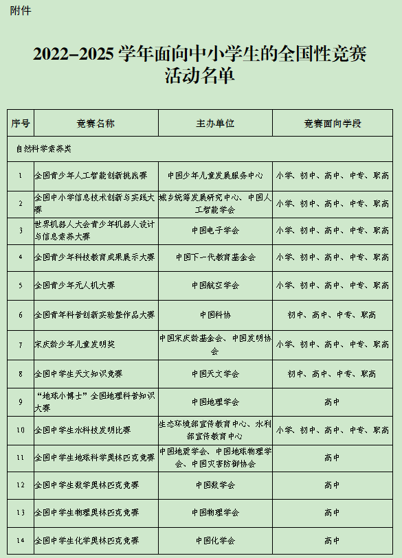教育部公示2022-2025學(xué)年面向中小學(xué)生的45項(xiàng)全國性競賽活動名單