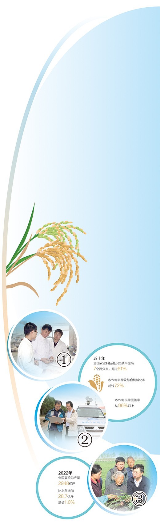 青紗帳里,玉米行行挺拔;汪汪水田,晚稻株株青綠……國(guó)家統(tǒng)計(jì)局?jǐn)?shù)據(jù)顯示:2022年全國(guó)夏糧總產(chǎn)量2948億斤,比上年增加28.7億斤,增長(zhǎng)1.0%。這離不開廣大農(nóng)業(yè)科學(xué)家的持續(xù)努力。長(zhǎng)期以來(lái),廣大農(nóng)業(yè)科學(xué)家圍繞農(nóng)業(yè)農(nóng)村發(fā)展,把論文寫在大地上、把成果送進(jìn)億萬(wàn)農(nóng)民家,為實(shí)現(xiàn)農(nóng)業(yè)穩(wěn)產(chǎn)增產(chǎn)、促進(jìn)農(nóng)民持續(xù)增收、打贏脫貧攻堅(jiān)戰(zhàn)和推動(dòng)鄉(xiāng)村振興作出重要貢獻(xiàn)。本版推出特別策劃,為您講述三位農(nóng)業(yè)科學(xué)家的故事。