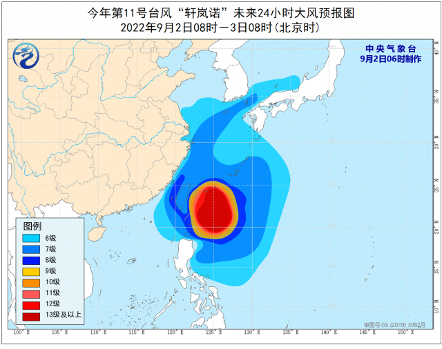 大風(fēng)預(yù)報(bào):9月2日08時(shí)至3日08時(shí),巴士海峽、臺灣海峽、臺灣以東洋面、東海大部及釣魚島附近海域、長江口區(qū)、杭州灣,以及臺灣島北部和東部沿海、福建中北部沿海、浙江沿海、上海沿海、江蘇南部沿海將有6-8級大風(fēng),陣風(fēng)9-10級,其中臺灣以東洋面的風(fēng)力有9-12級,陣風(fēng)11-15級,“軒嵐諾”中心經(jīng)過的附近海面的風(fēng)力有13-15級,陣風(fēng)可達(dá)16-17級。