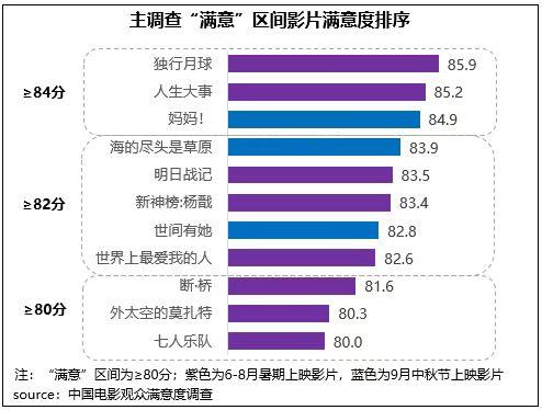 中國電影觀眾滿意度調(diào)查:近三個(gè)月15部影片中有13部進(jìn)入“滿意”區(qū)間