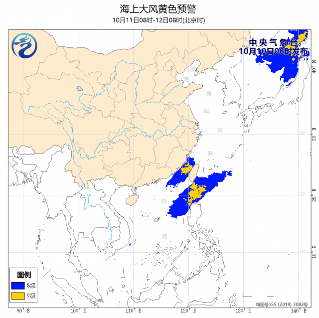 中央氣象臺10月10日06時繼續(xù)發(fā)布海上大風(fēng)黃色預(yù)警: