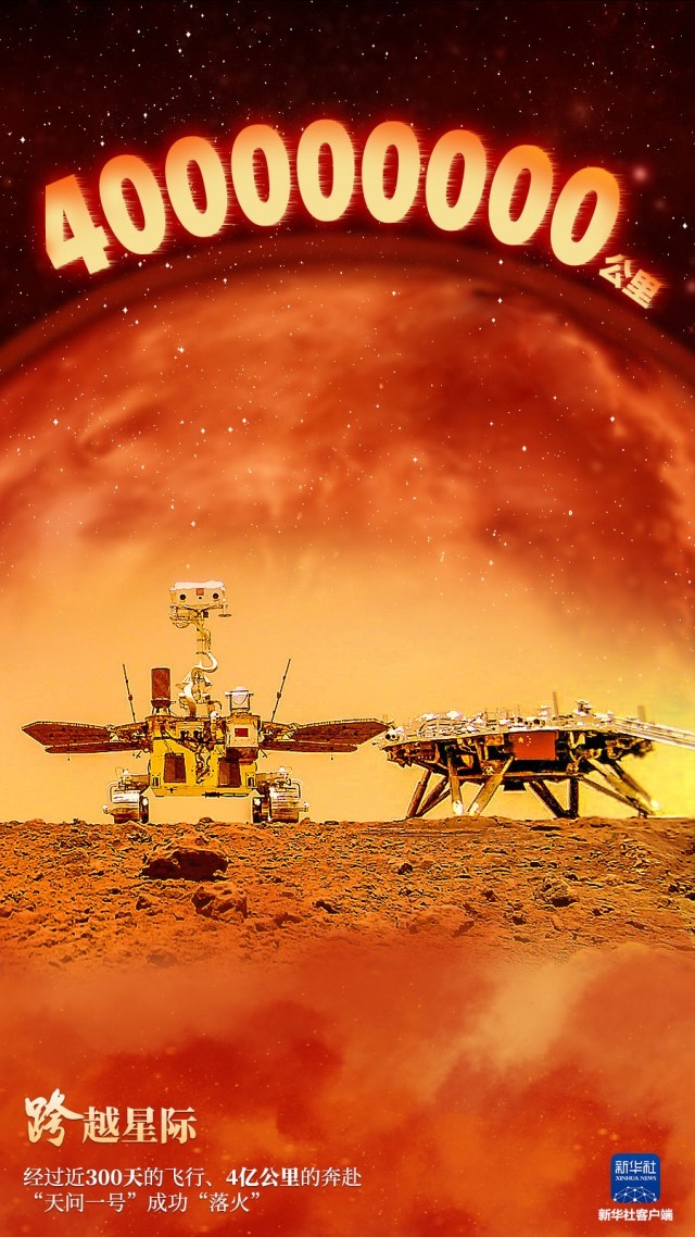 經(jīng)過(guò)近300天的飛行、4億公里的奔赴,“天問(wèn)一號(hào)”成功“落火”;