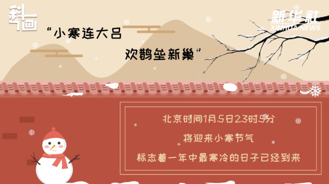 “小寒連大呂,歡鵲壘新巢”,北京時(shí)間1月5日23時(shí)5分將迎來(lái)小寒節(jié)氣,標(biāo)志著一年中最寒冷的日子已經(jīng)到來(lái),我國(guó)大部分地區(qū)進(jìn)入嚴(yán)寒時(shí)期,正如民諺所說(shuō):“小寒時(shí)處二三九,天寒地凍冷到抖”。