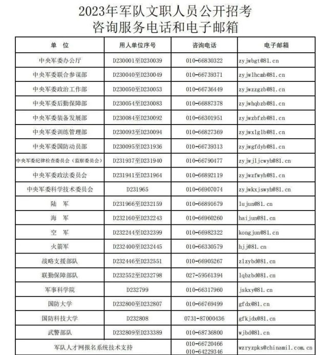 2023年軍隊文職人員公開招考今起報名