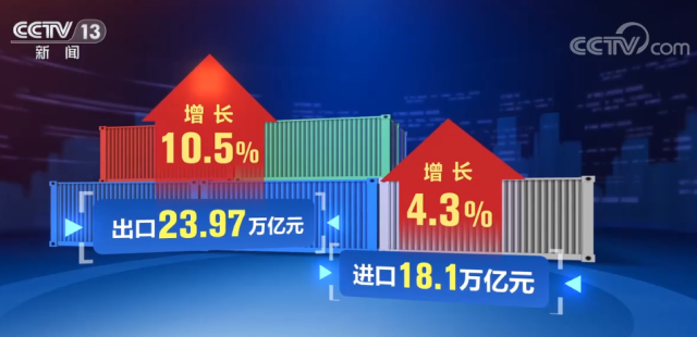 海關(guān)統(tǒng)計顯示,2022年,我國外貿(mào)進(jìn)出口總值42.07萬億元,比2021年增長7.7%。其中,出口23.97萬億元,增長10.5%;進(jìn)口18.1萬億元,增長4.3%。