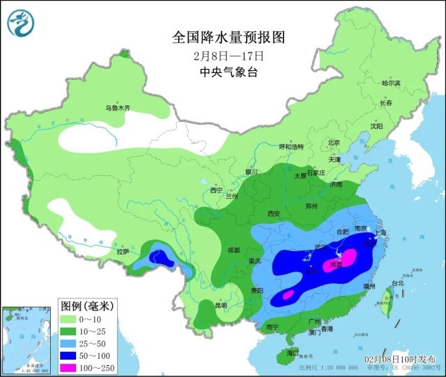 從2月7日起,我國中東部地區(qū)出現(xiàn)大范圍雨雪天氣。8日白天,甘肅中東部、寧夏中南部、陜西中部等部分地區(qū)出現(xiàn)中到大雪或雨夾雪,陜西寶雞局地暴雪;湖南南部、江西中部、浙江西南部、福建北部、廣西東北部等部分地區(qū)出現(xiàn)中到大雨,江西上饒局地暴雨。