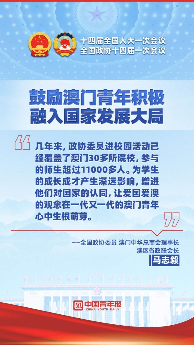 3月7日早,全國政協(xié)十四屆一次會(huì)議第二場“委員通道”在人民大會(huì)堂新聞發(fā)布廳開啟,委員講述的履職故事中含“青”量滿滿:“藍(lán)朋友”的主體是年輕人;讓愛國愛澳的觀念在一代代澳門青年心中生根萌芽……此外,青年關(guān)注的教育、就業(yè)創(chuàng)業(yè)等問題也得到了委員的回應(yīng)。看圖一起回顧委員通道上的精彩時(shí)刻。
