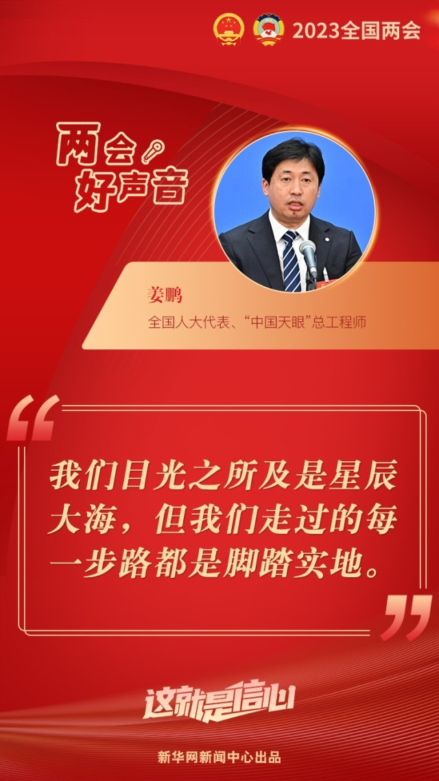 “我們目光之所及是星辰大海,但我們走過(guò)的每一步路都是腳踏實(shí)地?!?日下午舉行的第二場(chǎng)“代表通道”采訪活動(dòng)中,全國(guó)人大代表、“中國(guó)天眼”總工程師姜鵬感慨道。