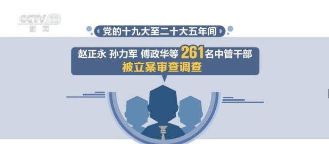 根據(jù)通報(bào),黨的十九大至二十大五年間,趙正永、孫力軍、傅政華等261名中管干部被立案審查調(diào)查。全國(guó)紀(jì)檢監(jiān)察機(jī)關(guān)共立案306.6萬件,處分299.2萬人;立案審查調(diào)查行賄人員4.8萬人,移送檢察機(jī)關(guān)1.3萬人。