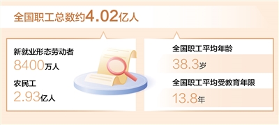 本報北京3月26日電 (記者易舒冉)記者日前從中華全國總工會獲悉:第九次全國職工隊伍狀況調(diào)查已于近期結(jié)束,調(diào)查表明,目前全國職工總數(shù)4.02億人左右,新就業(yè)形態(tài)勞動者8400萬人,農(nóng)民工2.93億人;職工平均年齡38.3歲、平均受教育年限13.8年。調(diào)查還顯示,職工理想信念更加堅定,主人翁地位持續(xù)鞏固,越來越多的職工積極投身“當(dāng)好主人翁、建功新時代”“建功‘十四五’、奮進(jìn)新征程”等主題勞動和技能競賽。