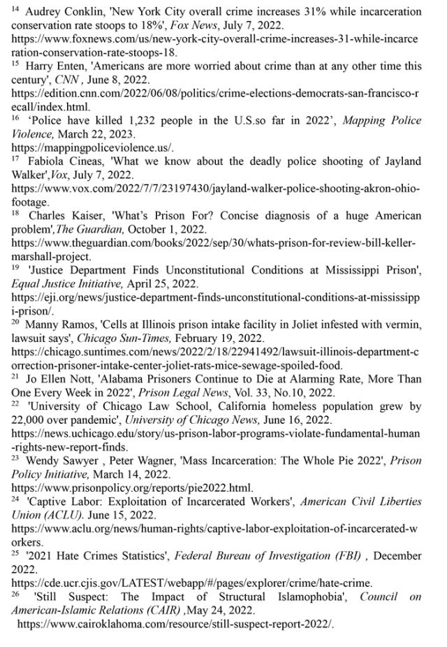 執(zhí)法司法領(lǐng)域種族歧視根深蒂固。聯(lián)合國消除種族歧視委員會的結(jié)論性報告指出,美國執(zhí)法人員對有色人種和少數(shù)族裔群體過度使用暴力并逍遙法外的情況仍然普遍存在;有色人種和少數(shù)族裔在美國司法系統(tǒng)中被逮捕、監(jiān)禁和長期虐待的情況突出。(注73)“警察暴力地圖”網(wǎng)站的數(shù)據(jù)顯示,在2013年至2022年的警察殺人事件中,非洲裔被警察殺害的可能性是白人的2.78倍,手無寸鐵的非洲裔被警察殺害的可能性是手無寸鐵的白人的1.3倍。在波士頓、明尼阿波利斯和芝加哥,非洲裔被警察殺害的可能性更是白人的20多倍。(注74)美國國家公共電臺2022年9月27日報道,國家免責(zé)登記處發(fā)布的報告指出,非洲裔在美國人口中所占比例不到14%,但在美國被誤判犯有嚴重罪行并在至少服完部分刑期后獲釋的所有人中,非洲裔占了53%;美國非洲裔因三項重大罪行被錯誤定罪的可能性是白人的7倍,非洲裔因毒品犯罪被錯誤定罪的可能性是其他人的19倍。(注75)美國國家學(xué)院出版的《美國監(jiān)禁的增長:探索原因和后果》一書指出,滲透著種族主義的刑事司法系統(tǒng)“正日益成為一個更大的污名化和長期邊緣化系統(tǒng)的主要通道”。(注76)