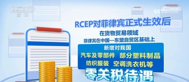 據(jù)了解,我國(guó)是菲律賓最大貿(mào)易伙伴、第一大進(jìn)口來源地和第三大出口市場(chǎng)。RCEP對(duì)菲律賓正式生效后,在貨物貿(mào)易領(lǐng)域,菲律賓在中國(guó)—東盟自貿(mào)區(qū)基礎(chǔ)上,新增對(duì)我國(guó)汽車及零部件、部分塑料制品、紡織服裝、空調(diào)洗衣機(jī)等,零關(guān)稅待遇。