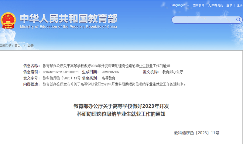 中國青年報客戶端北京5月9日電(中青報·中青網(wǎng)記者 葉雨婷)記者今天從教育部獲悉,教育部辦公廳發(fā)布“關(guān)于高等學(xué)校做好2023年開發(fā)科研助理崗位吸納畢業(yè)生就業(yè)工作的通知”指出,要加強組織領(lǐng)導(dǎo),統(tǒng)籌科研、人事、財務(wù)、就業(yè)等相關(guān)部門,充分挖掘資源和自身潛力,切實推進開發(fā)科研助理崗位吸納2023屆高校畢業(yè)生就業(yè)工作。教育部將把科研助理崗位及實聘人數(shù)作為安排推薦免試攻讀研究生名額的重要參考因素。