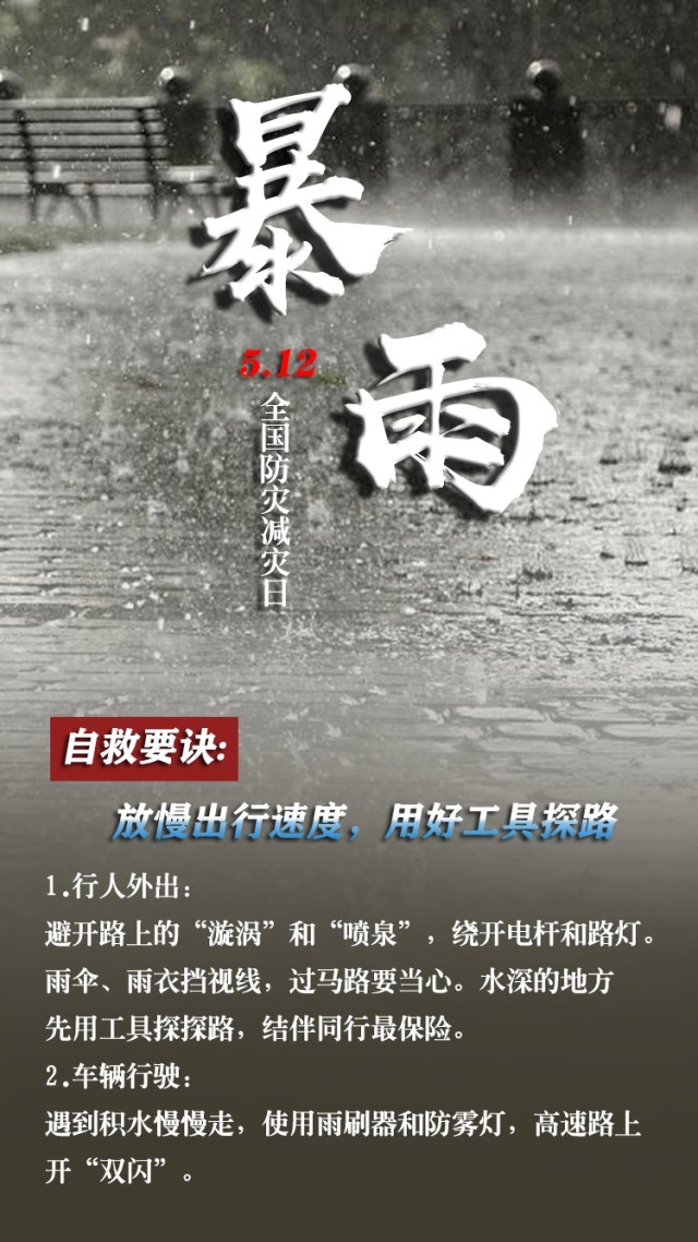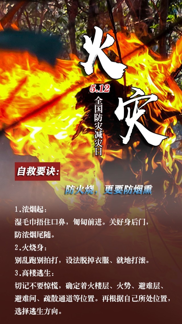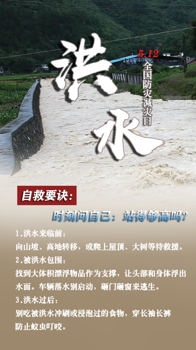 今天是第15個(gè)全國防災(zāi)減災(zāi)日。自然災(zāi)害隨時(shí)可能發(fā)生,及時(shí)自救才更有生存希望。地震來時(shí),如何抓住12秒黃金逃生時(shí)間?發(fā)生火災(zāi)時(shí),如何躲避火場濃煙?暴雨天如何安全出行?沙塵天氣如何做好防護(hù)……這份實(shí)用避險(xiǎn)口訣簡單好記,請(qǐng)速速收藏。