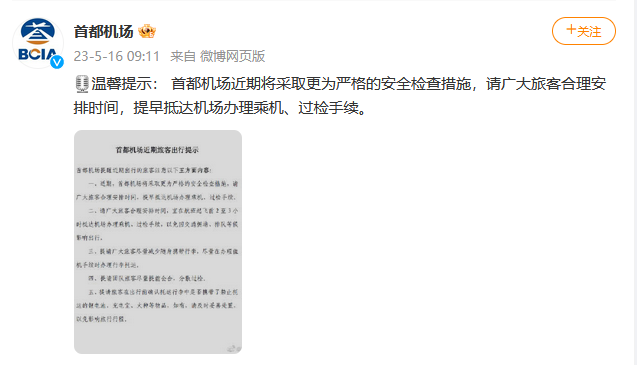 首都機(jī)場(chǎng):近期將采取更為嚴(yán)格的安檢措施