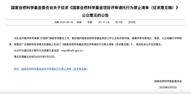 國家自然科學(xué)基金項(xiàng)目評審請托行為禁止清單公開征求意見