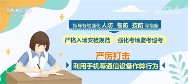 同時,會同公安部、工業(yè)和信息化部等部門聯合開展打擊作弊專項行動,將防范手機作弊作為重中之重,多措并舉、綜合施策,指導各地強化人防、物防、技防等措施,嚴格入場安檢規(guī)范,強化考場監(jiān)考巡考,嚴厲打擊利用手機等通信設備作弊行為。對于在高考中存在作弊行為的考生和人員,將依法依規(guī)嚴肅處理,堅決維護高考的公平公正。