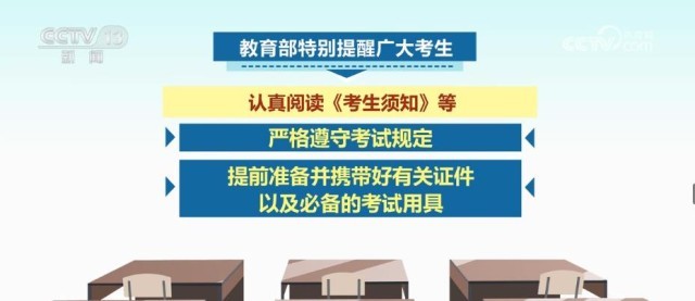 教育部特別提醒廣大考生,認真閱讀《考生須知》等,嚴格遵守考試規(guī)定,提前準備并攜帶好有關(guān)證件以及必備的考試用具。