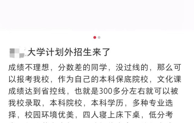 圖為在某社交媒體上搜索到的一條“計劃外招生”信息。(互聯(lián)網(wǎng)截圖)