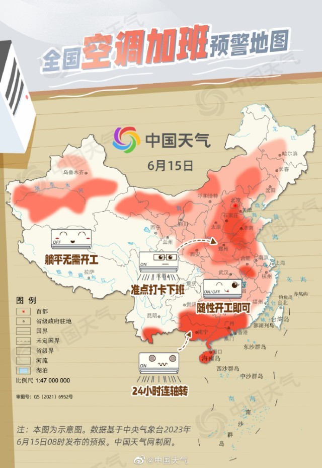 北烤南蒸!全國(guó)空調(diào)加班預(yù)警地圖出爐