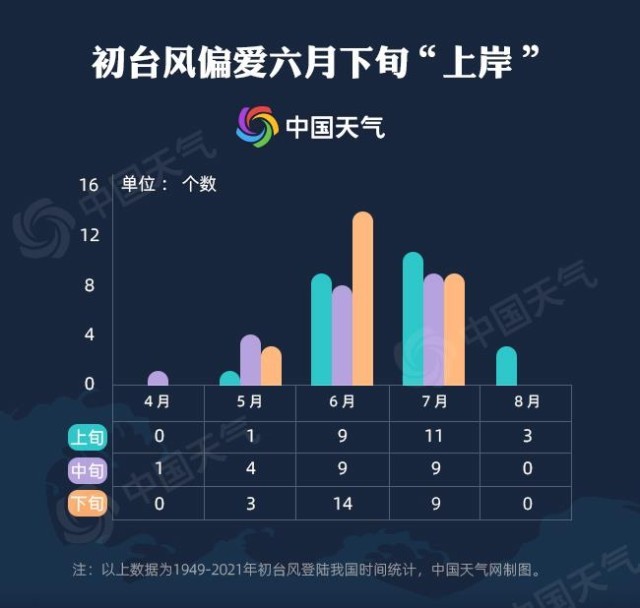 根據(jù)預(yù)報(bào),這個(gè)熱帶系統(tǒng)或?qū)⒂?月17日至18日左右在廣東到海南一帶沿海登陸。據(jù)中國天氣網(wǎng)大數(shù)據(jù)顯示,一般首個(gè)登陸我國的臺風(fēng)多集中在每年的6月至7月,其中,6月下旬登陸的比例最高,7月上旬登陸比例位列第二。