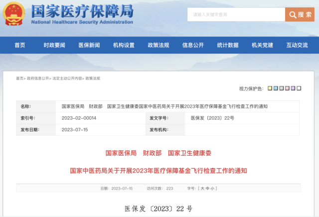 四部門聯(lián)合組織開展2023年醫(yī)保基金飛行檢查