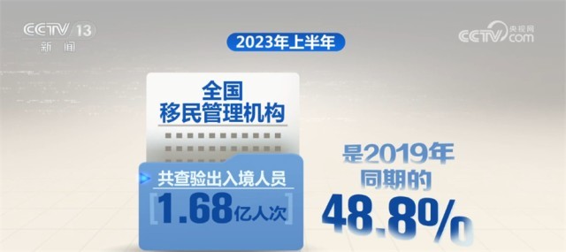 據(jù)國(guó)家移民管理局統(tǒng)計(jì),2023年上半年,全國(guó)移民管理機(jī)構(gòu)共查驗(yàn)出入境人員1.68億人次,是2019年同期的48.8%,其中內(nèi)地居民8027.6萬(wàn)人次,港澳臺(tái)居民7490.3萬(wàn)人次,外國(guó)人843.8萬(wàn)人次(不含邊民);查驗(yàn)交通運(yùn)輸工具983.1萬(wàn)架(艘、列、輛)次,是2019年同期的53.8%,其中,飛機(jī)20.4萬(wàn)架次、船舶19.1萬(wàn)艘次、火車4.4萬(wàn)列次、汽車939.2萬(wàn)輛次。