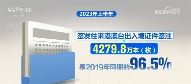 今年上半年,各地公安機(jī)關(guān)出入境管理部門共簽發(fā)普通護(hù)照1000余萬(wàn)本,是2019年同期的68.2%;簽發(fā)往來(lái)港澳臺(tái)出入境證件簽注4279.8萬(wàn)本(枚),是2019年同期的96.5%;為在華外國(guó)人辦理停留居留證件37.9萬(wàn)人次,是2019年同期的86.7%。