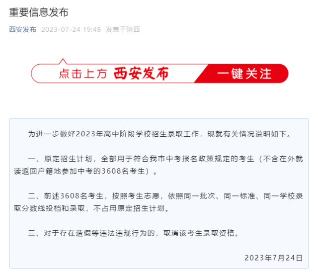 為進一步做好2023年高中階段學(xué)校招生錄取工作,現(xiàn)就有關(guān)情況說明如下。