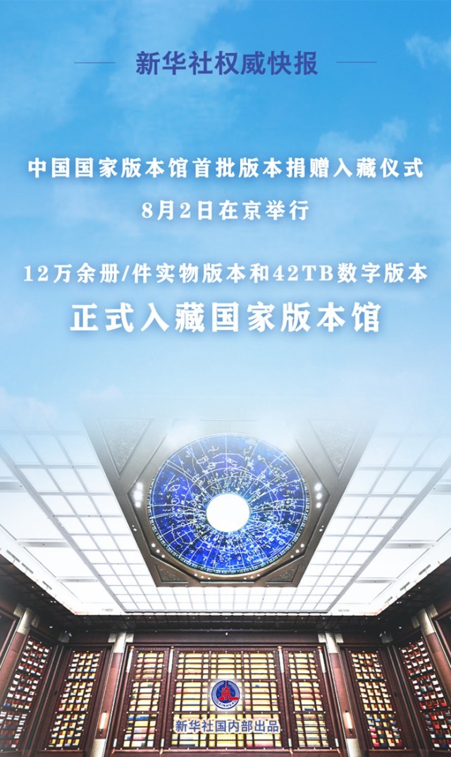 中國(guó)國(guó)家版本館首批版本捐贈(zèng)入藏儀式8月2日在京舉行