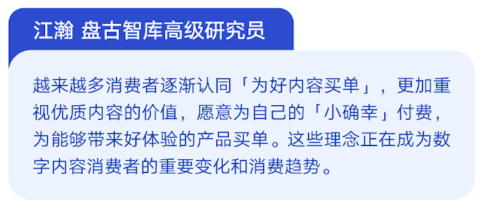 付費(fèi)用戶數(shù)的持續(xù)提升,與版權(quán)環(huán)境向好密切相關(guān)。盤古智庫高級研究員江瀚指出,越來越多的消費(fèi)者逐漸認(rèn)同了為好內(nèi)容買單的思路,也更加重視優(yōu)質(zhì)內(nèi)容的價(jià)值,愿意為自己的“小確幸”付費(fèi),為能夠給自己帶來好體驗(yàn)的產(chǎn)品買單,這一思路正在成為重要的消費(fèi)趨勢。對此,TME在財(cái)報(bào)中也表示,公司在多年的努力過程中看到,用戶支持正版的意識(shí)越來越強(qiáng)。