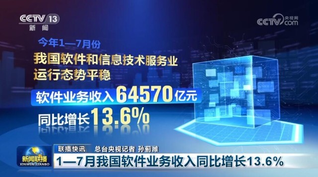 1—7月我國軟件業(yè)務(wù)收入同比增長13.6%