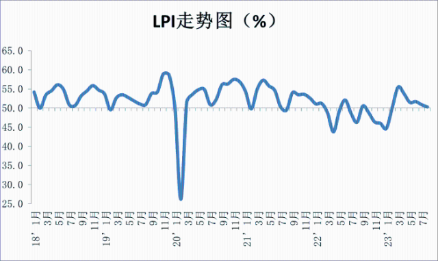 2023年8月份中國(guó)物流業(yè)景氣指數(shù)為50.3%