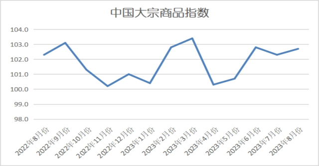 2023年8月份中國大宗商品指數(shù)(CBMI)為102.7%