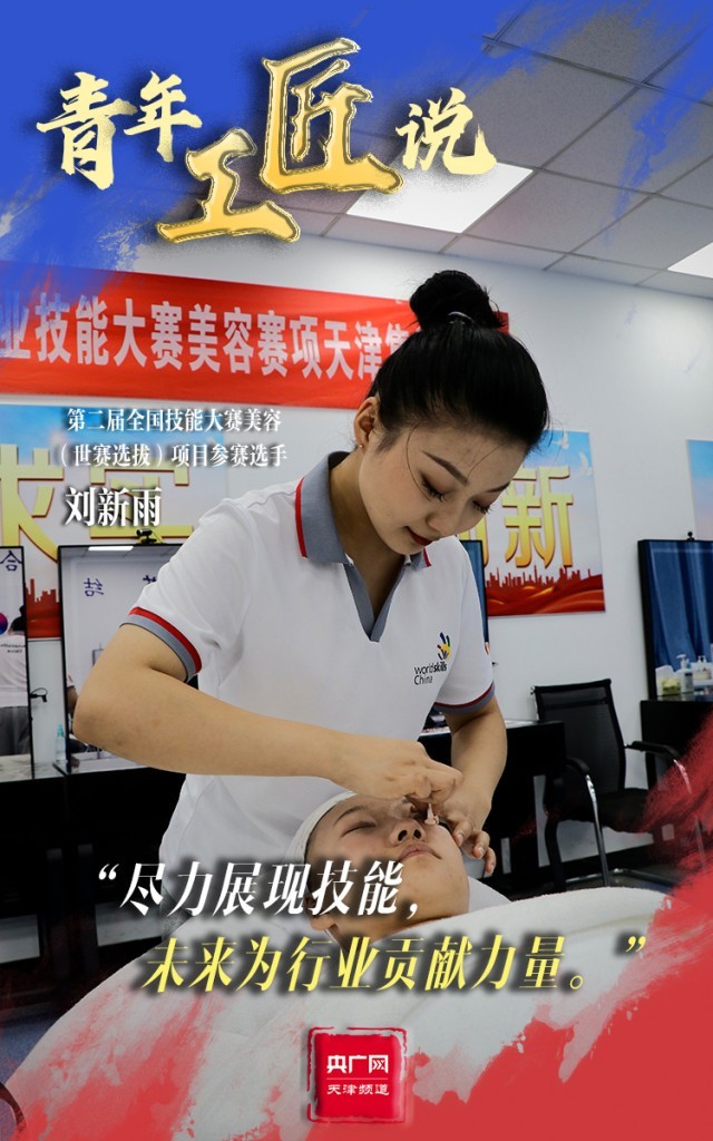 在天津,本屆全國(guó)技能大賽還將展開一場(chǎng)關(guān)于“美”的精彩比拼。即將參加美容(世賽選拔)項(xiàng)目的劉新雨正在集訓(xùn)基地中進(jìn)行訓(xùn)練。本次比賽內(nèi)容共設(shè)置了5個(gè)模塊及11個(gè)子模塊,高難度的比賽及細(xì)致的考核要求,對(duì)選手的素質(zhì)、體力和心理都是極大的挑戰(zhàn)?!拔夷軈⒓舆@個(gè)比賽感到很榮幸,通過比賽訓(xùn)練,既能考驗(yàn)自己的技能水平,又能開闊眼界。”劉新雨說,“在這個(gè)過程中,我也正不斷挑戰(zhàn)自我,發(fā)現(xiàn)新的自己。”