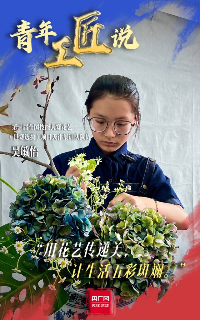 青春,是以工匠精神筑就美好生活的底色。走進(jìn)位于天津農(nóng)學(xué)院花藝(世賽選拔)項(xiàng)目的集訓(xùn)現(xiàn)場(chǎng),生機(jī)盎然、芬芳馥郁,天津集訓(xùn)隊(duì)隊(duì)員吳敏怡正在挑選花材和花器,為每一件作品賦予一番獨(dú)特的意境。從2023年5月以來,吳敏怡每天要與花相伴12個(gè)小時(shí),在審美及技術(shù)水平上的提高也讓她很有成就感。對(duì)于本次比賽,她也充滿期待:“我的目標(biāo)是起碼能拿一個(gè)優(yōu)勝獎(jiǎng),也是為了突破自己,讓自己的花藝技術(shù)更上一層樓。”她說,她也將用花藝傳遞生活中的美,讓生活五彩斑斕。