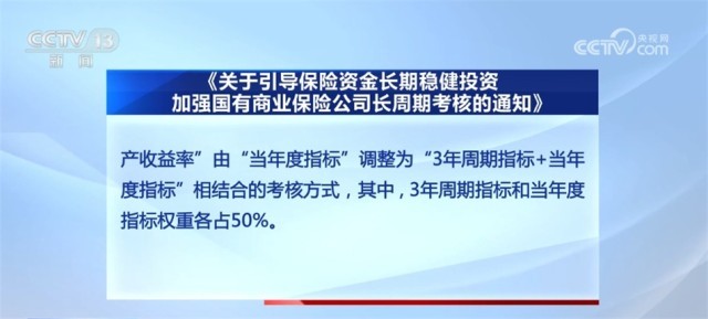 《通知》明確,為引導國有商業(yè)保險公司長期穩(wěn)健經營,更好發(fā)揮中長期資金的市場穩(wěn)定器和經濟發(fā)展助推器作用,加強對國有商業(yè)保險公司的長周期考核,根據《財政部關于印發(fā)<商業(yè)保險公司績效評價辦法>的通知》,將經營效益指標的“凈資產收益率”由“當年度指標”調整為“3年周期指標+當年度指標”相結合的考核方式,其中,3年周期指標和當年度指標權重各占50%。