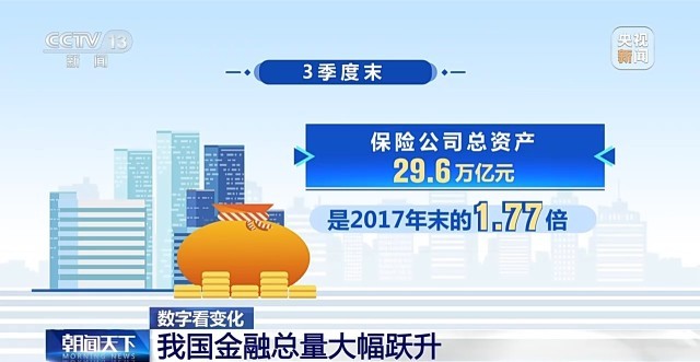 保險(xiǎn)方面,3季度末,保險(xiǎn)公司總資產(chǎn)29.6萬億元,是2017年末的1.77倍。從2018年到今年3季度末,保險(xiǎn)公司賠款與給付累計(jì)支出8.4萬億元,保險(xiǎn)的保障功能日益突出。