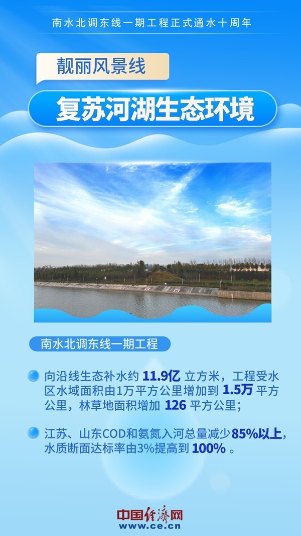 10年來,長江水、淮河水、黃河水等水系構筑起的縱橫水網(wǎng),由一渠清水串連,鋪陳在東方大地上,連接起江蘇、安徽、山東3省的23個地級市和其轄內(nèi)的101個縣(市、區(qū))用水需求,惠及沿線超6800萬人。