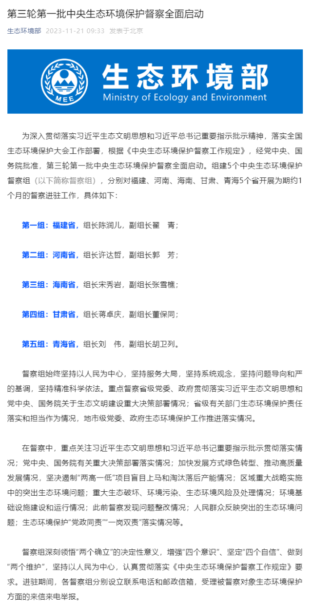 第三輪第一批中央生態(tài)環(huán)境保護督察全面啟動