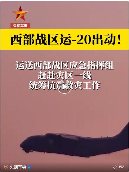 正在有序進(jìn)行運(yùn)-20運(yùn)送西部戰(zhàn)區(qū)應(yīng)急指揮組趕赴災(zāi)區(qū)一線