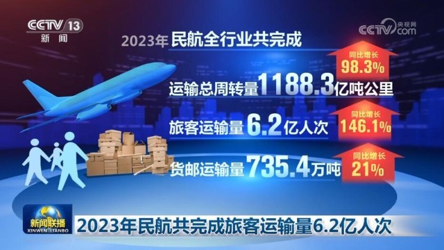 2023年民航共完成旅客運輸量6.2億人次