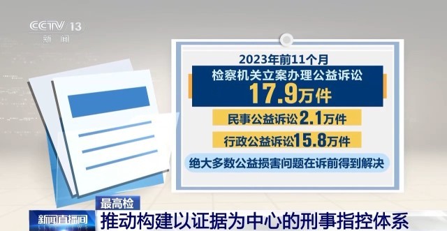 2023年前11個月,檢察機關立案辦理公益訴訟17.9萬件,其中民事公益訴訟2.1萬件、行政公益訴訟15.8萬件。絕大多數(shù)公益損害問題在訴前得到解決。